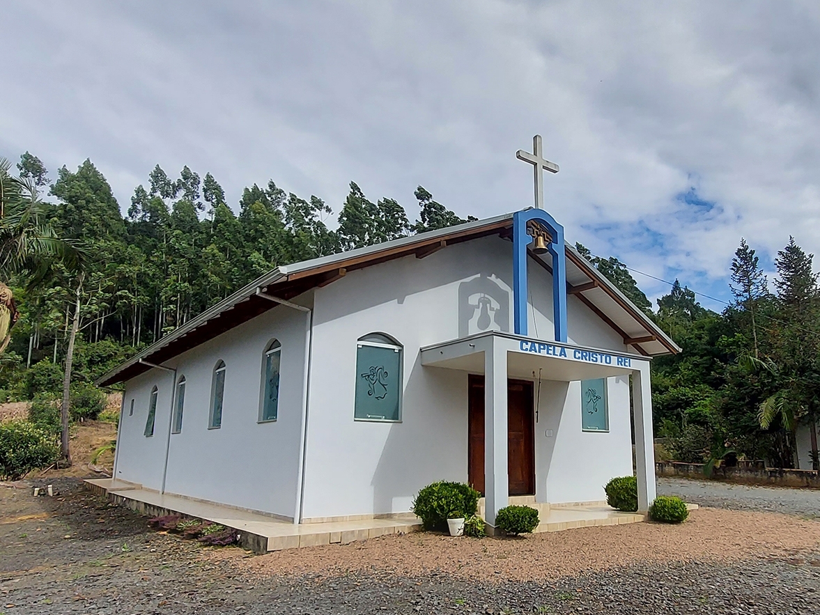 Em 1966, quando tiveram a idéia de construir a igreja, Evaldo e Gertrudes Wiggers optaram pelo padroeiro Cristo Rei e Roque Borgonovo gostaria que o padroeiro fosse São Roque. Como não chegaram num entendimento, foi colocado em votação para a Comunidade, e o escolhido foi o padroeiro Cristo Rei. A imagem foi comprada com o dinheiro da própria comunidade.