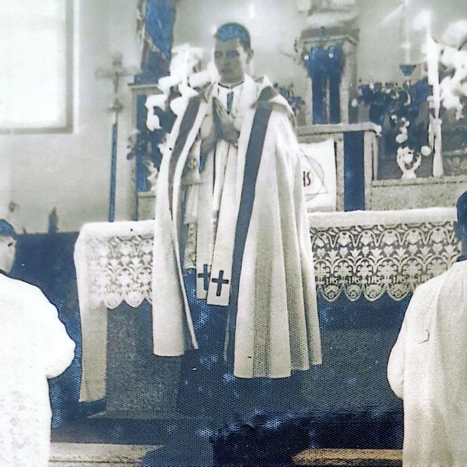 Eu tinha apenas seis anos. Lembro que todas as noites a família se reunia na sala da nossa casa simples, no interior de São Pedro de Alcântara. Meus pais, Adelaide e Domingos, e seus dez filhos permaneciam ajoelhados durante a oração do terço. Quando a prece terminava, mamãe pegava a lâmpada de querosene e a levava para a cozinha. Nós a seguíamos correndo, ansiosos pelo momento em que ela nos chamaria para o jantar. Mas havia algo que, mesmo com minha pouca idade, me intrigava: enquanto corríamos pela casa, meu irmão Augustinho, de 12 anos, permanecia ajoelhado, sozinho, na sala escura. Só saía de lá quando nossa mãe o chamava.