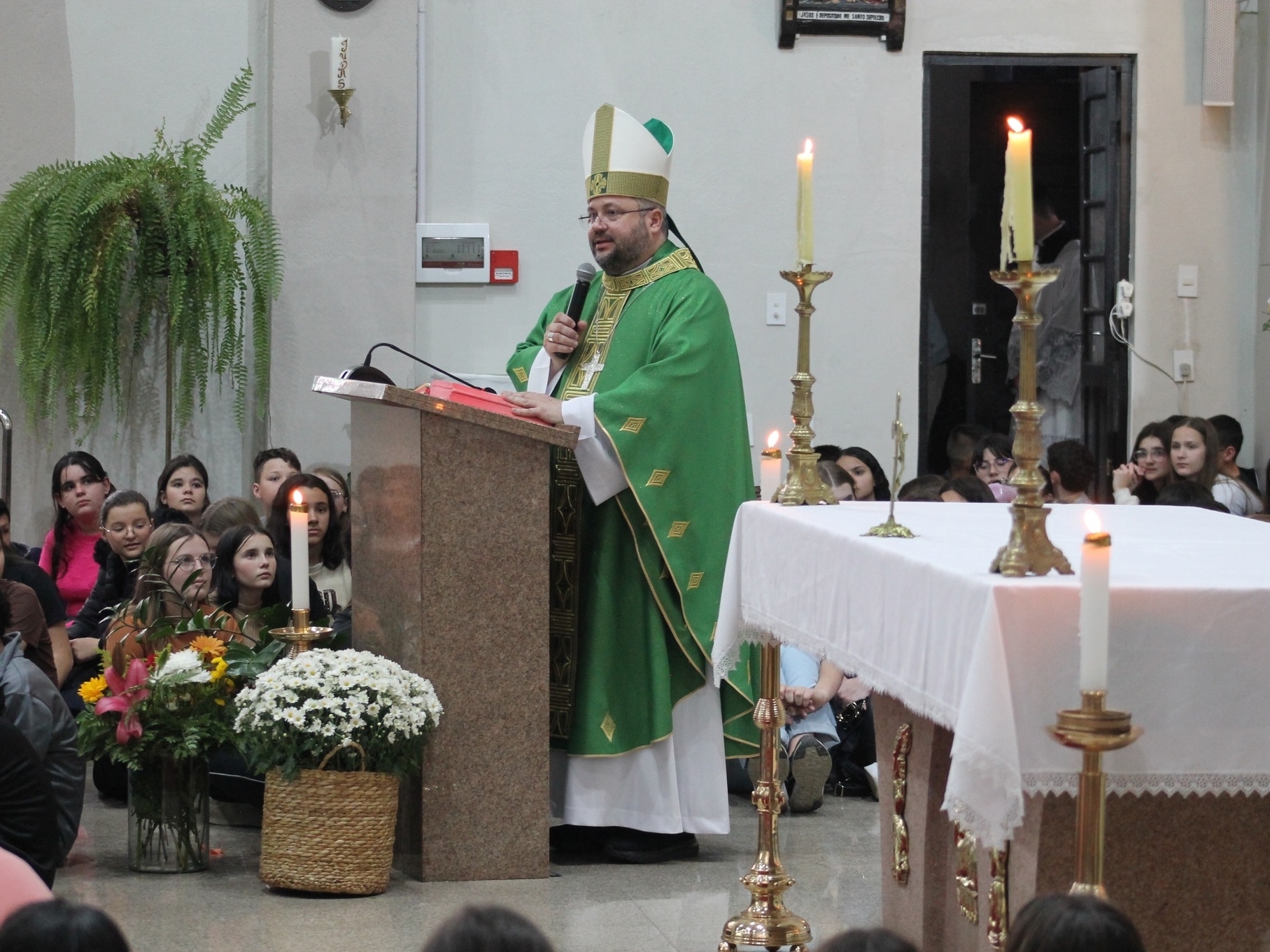 O ponto alto do dia foi a Celebração da Santa Missa, que encerrou o encontro na Igreja Matriz Santo Estêvão, após uma peregrinação que partiu do Seminário. A Missa foi presidida pelo Bispo Diocesano, Dom Adalberto Donadelli Júnior e concelebrada por diversos padres da Diocese. Em sua homilia, Dom Adalberto proferiu uma mensagem poderosa e atemporal a partir da Liturgia do dia e contextualizada para o coração e a mente da juventude presente.