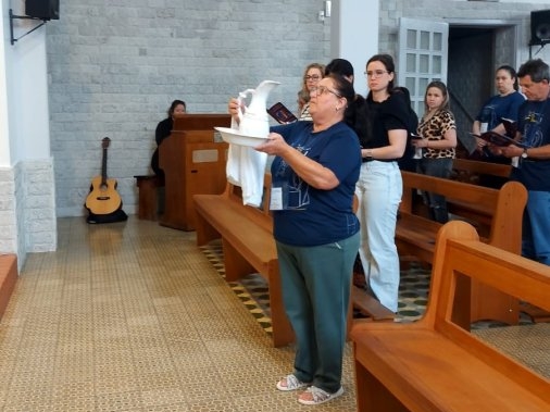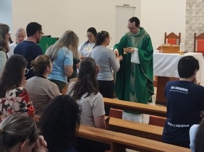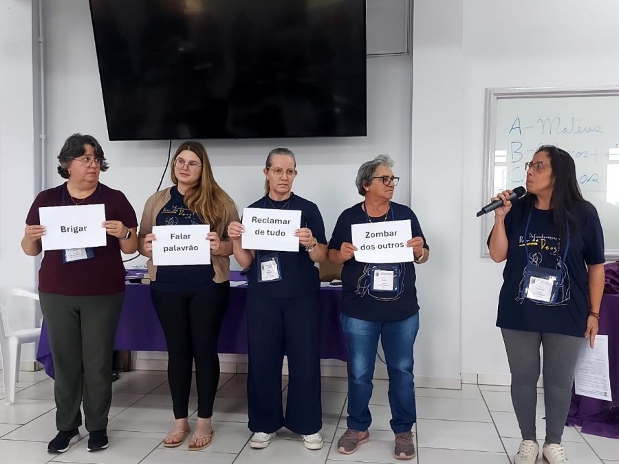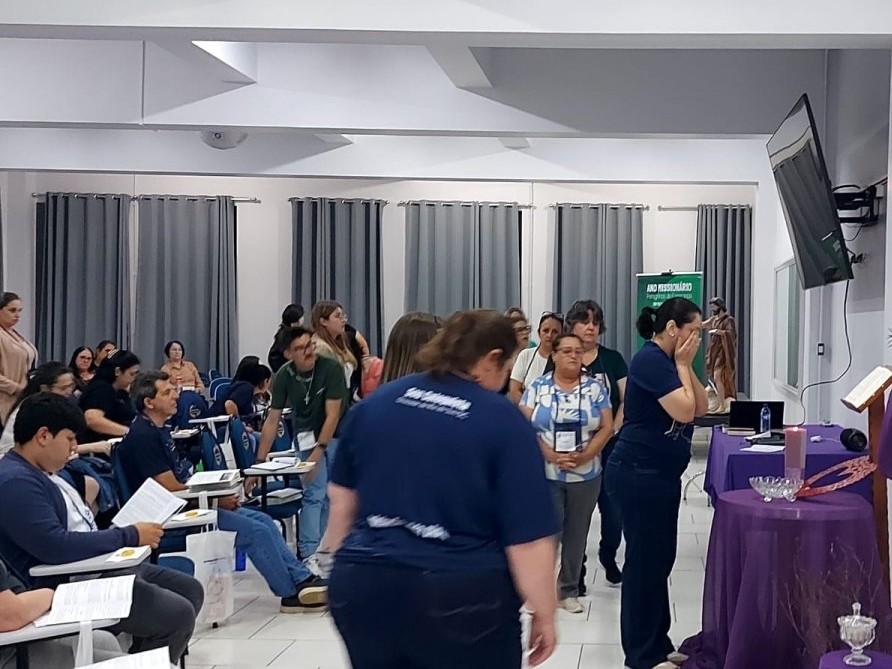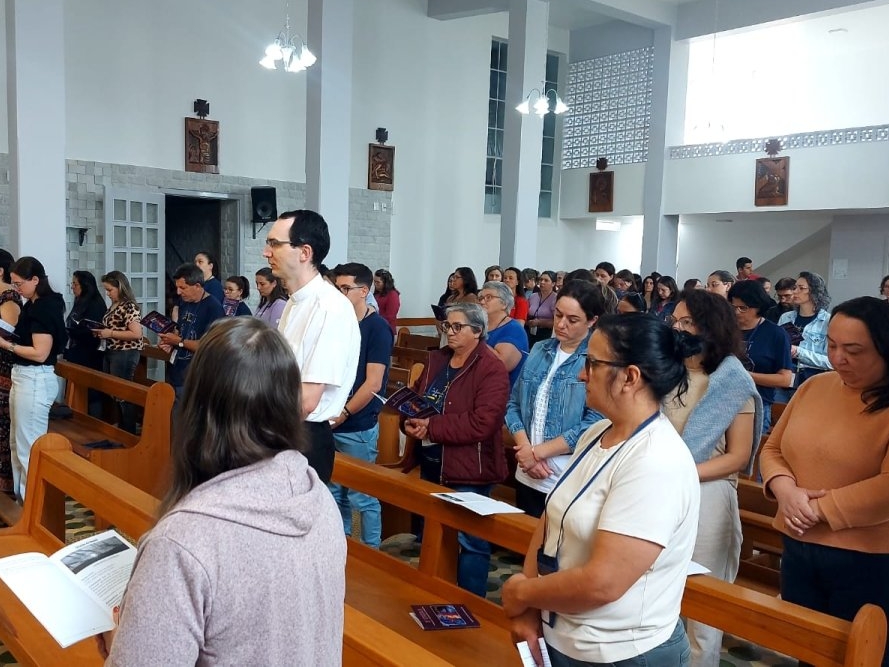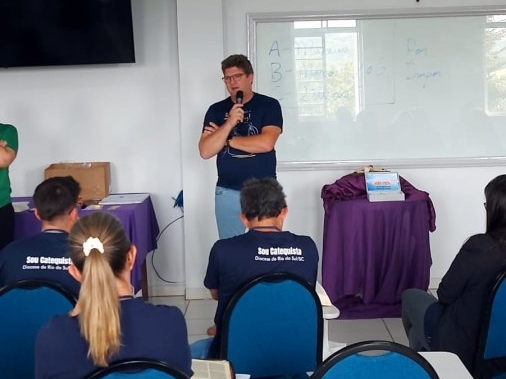 O encontro contou com a assessoria do Pe. João Humberto Luciani, presbítero da Diocese de Blumenau e Coordenador Regional da Pastoral Litúrgica, que conduziu os catequistas a uma rica experiência de fé, reflexão e oração.
