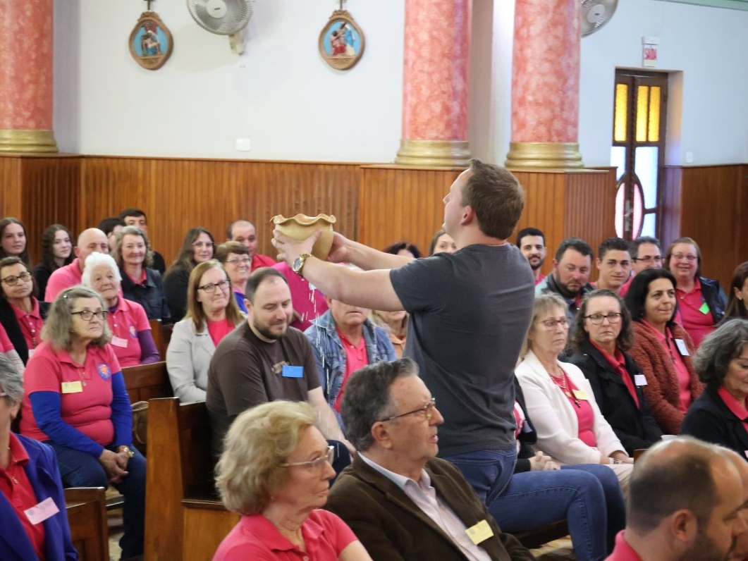 O encontro começou com a acolhida calorosa do grupo de Pouso Redondo e uma Oração inicial, preparando os corações dos presentes para a atividade.