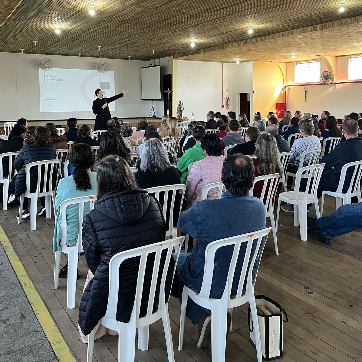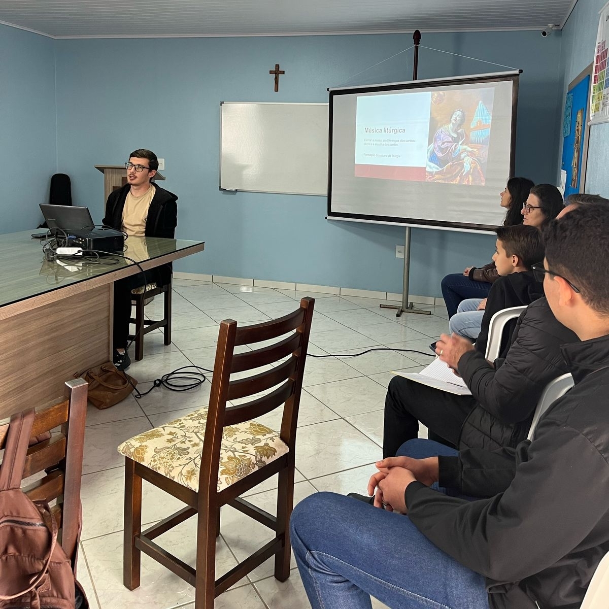 No período da tarde, os inscritos se dividiram em três grupos temáticos: um voltado para o ministério dos coroinhas, leitores e sacristãos; outro dedicado à música litúrgica ritual; e um terceiro com foco na atualização dos Ministros Extraordinários da Sagrada Comunhão.