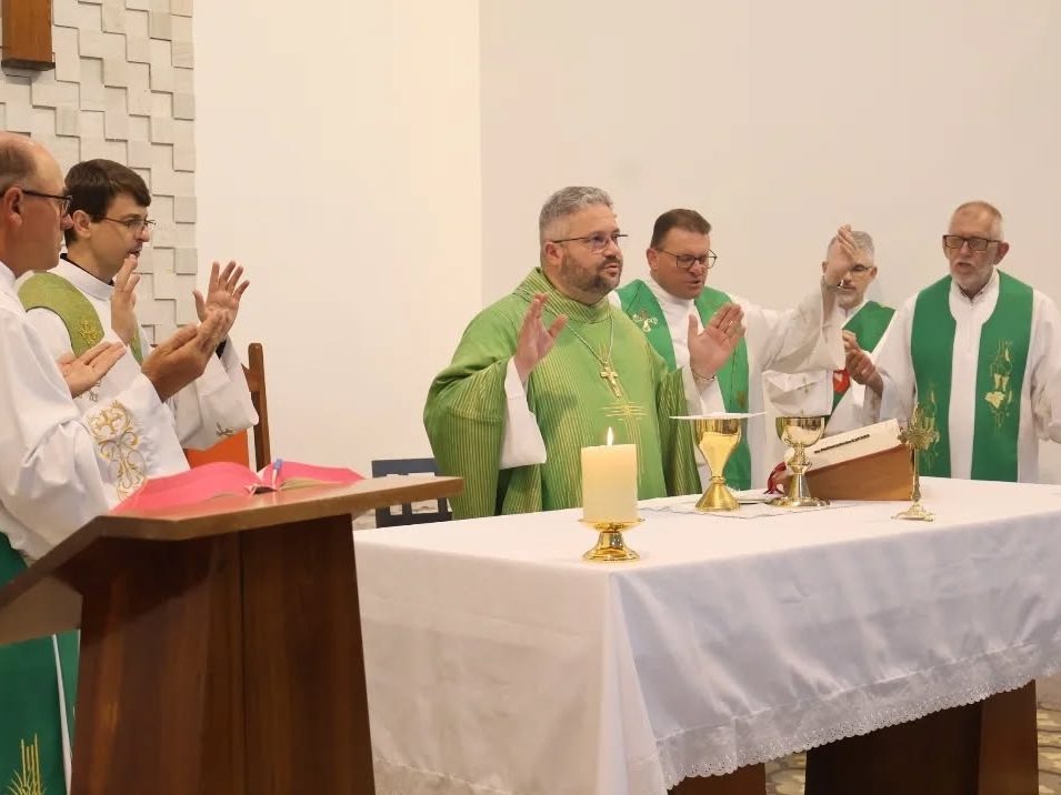 O início das atividades foi marcado pela Celebração da Santa Missa, presidida por nosso Bispo Diocesano, Dom Adalberto Donadelli Júnior, e concelebrada pelos padres Marcos Decker, Coordenador Diocesano de Pastoral, Osmar Debatin, Diretor da Escola, e Bertolino Tholl, padre referencial dos Diáconos da Diocese de Rio do Sul. Participaram também da celebração os diáconos representantes da Comissão do Diaconado Permanente da Diocese de Rio do Sul – CODIPE: Valdir, Wilson e Silvânio, além dos diáconos Adenilson, Aguinaldo e Ademir.A Escola Diaconal São João Batista inicia suas atividades com a participação de 33 alunos, que ao longo de três anos receberão formação humana, espiritual, pastoral e teológica, preparando-se para uma futura ordenação diaconal, conforme o chamado e o discernimento da Igreja. Foram momentos marcados por oração, alegria, emoção e profundo agradecimento a Deus, pela graça de vermos este sonho se tornar realidade. Após dois anos de caminhada, com formações, retiros e encontros promovidos pela CODIPE, celebramos com esperança e gratidão o início desta Escola, que nasce para servir a Igreja e fortalecer o ministério diaconal em nossa Diocese. Louvado seja Deus por mais este passo na missão evangelizadora da Diocese de Rio do Sul!