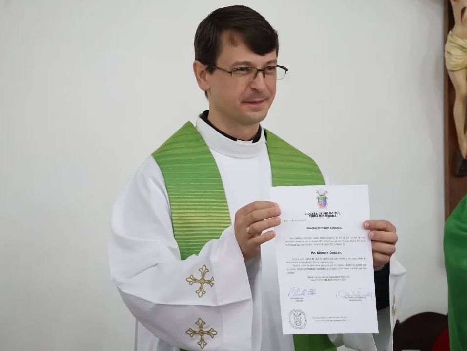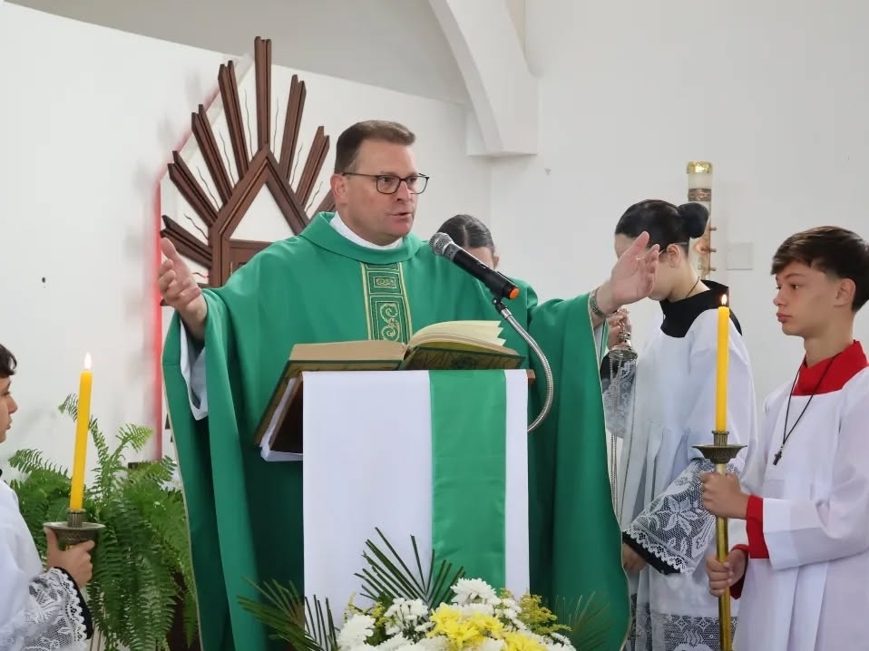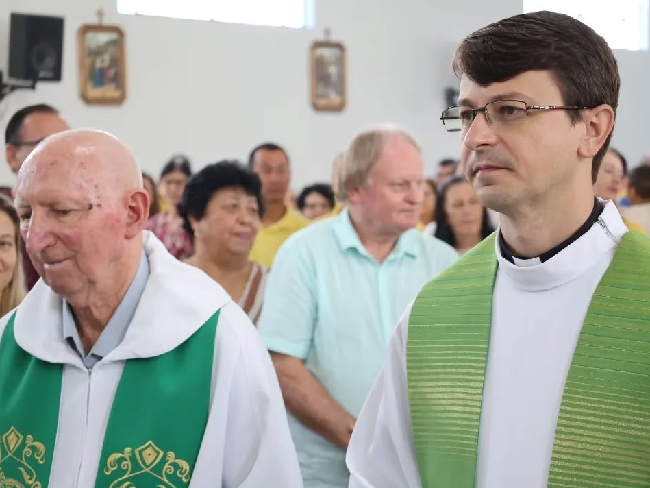 Neste domingo, 1º de fevereiro, a Paróquia São José Operário se reuniu com o coração em festa para acolher oficialmente o novo Pároco, Padre Osmar Debatin, e o Vigário Paroquial, Padre Marcos Decker. A celebração contou também com a presença do querido e amado Vigário Paroquial, Padre Evaristo Borgert, e foi enriquecida pela presença de nosso Bispo Diocesano, Dom Adalberto Donadelli Júnior.