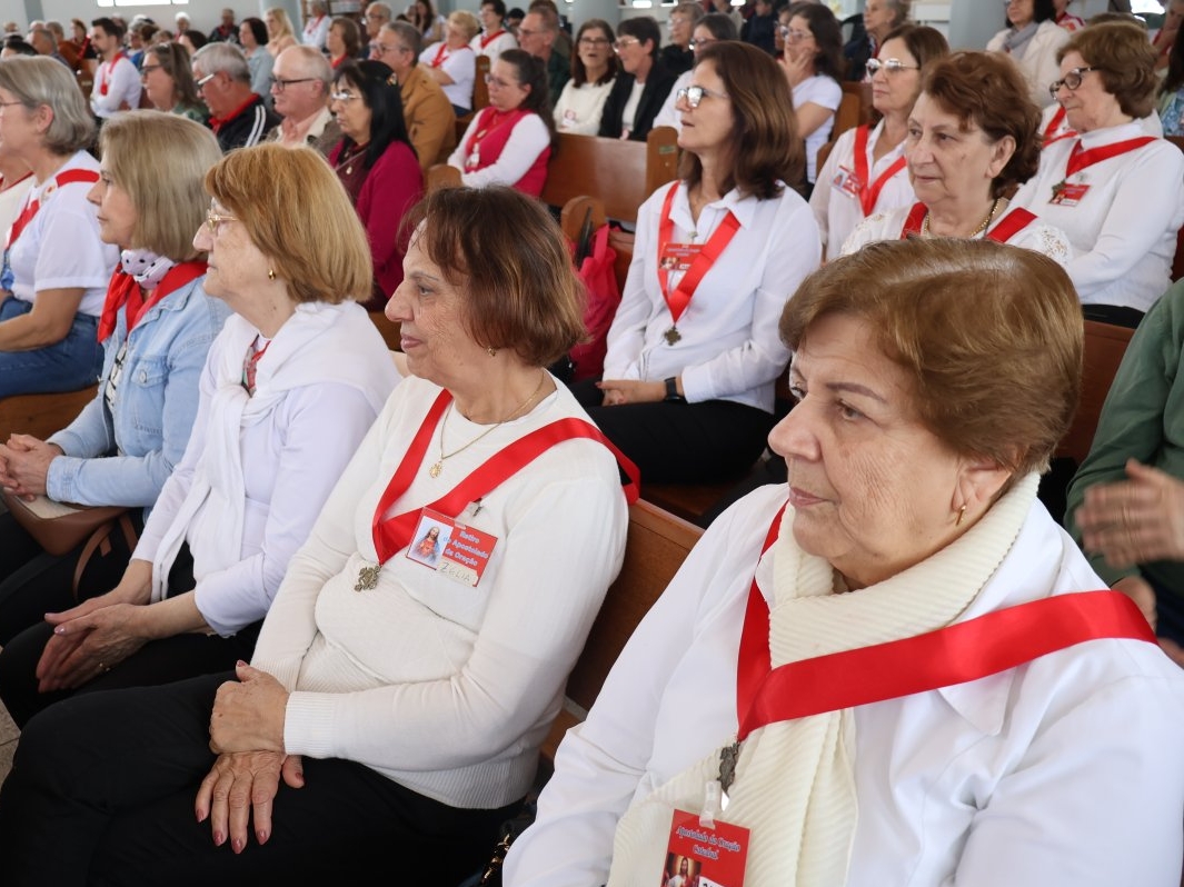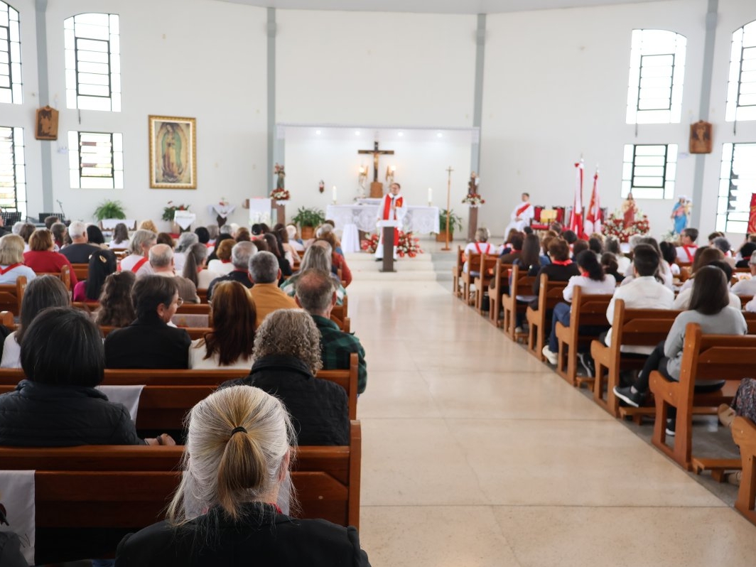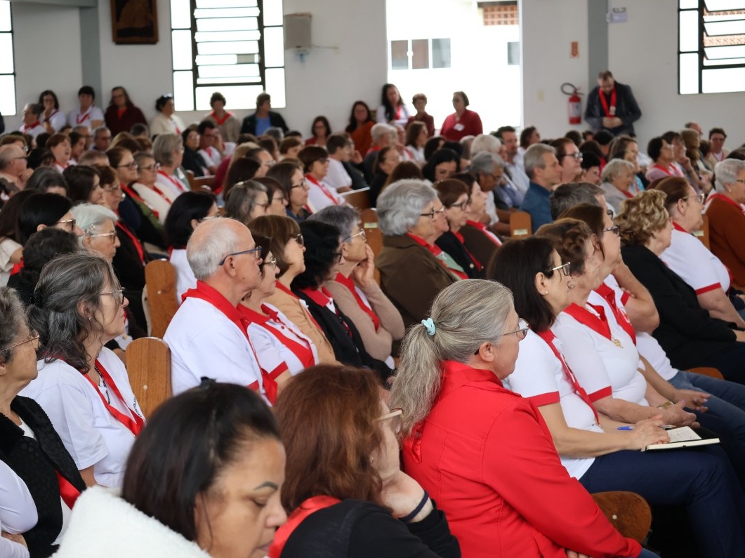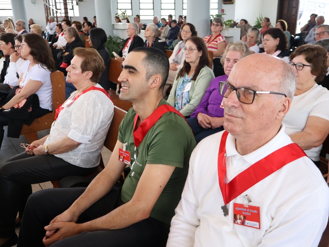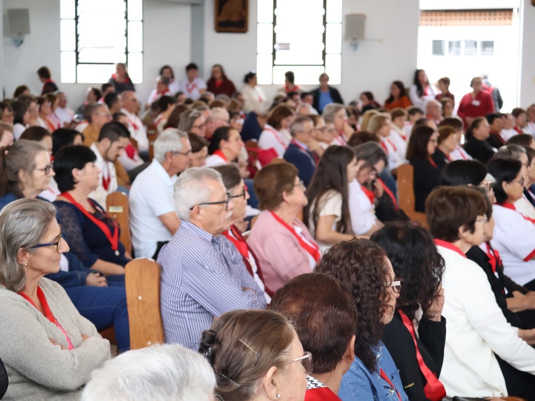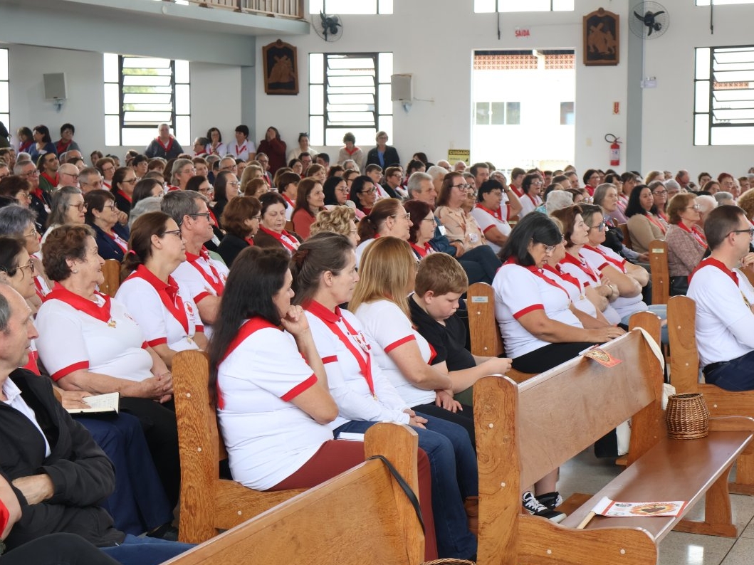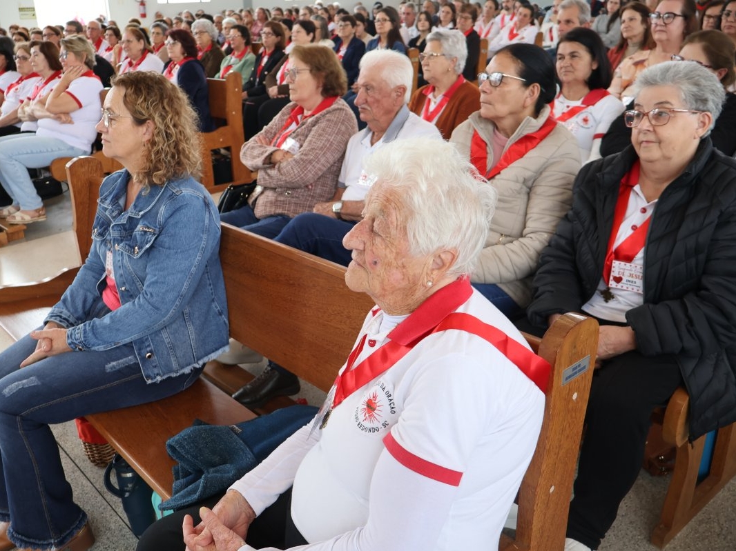 A programação vespertina continuou enriquecendo a fé de todos, com a Oração do Santo Terço e uma palestra com o Pe. Osmar Debatin. Além disso, houve a bênção de objetos e a tradicional entrega de fitas para os novos membros. O encontro foi encerrado com a Celebração Eucarística, presidida pelo Bispo Diocesano, Dom Adalberto Donadelli Júnior.