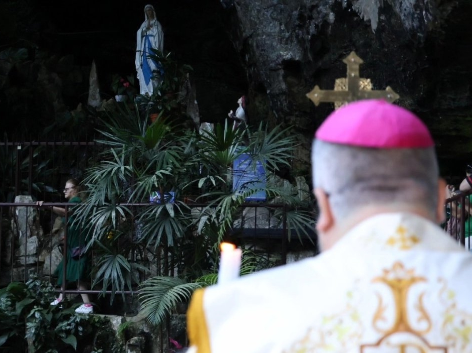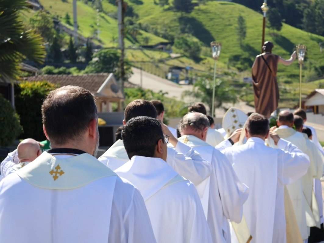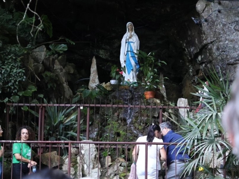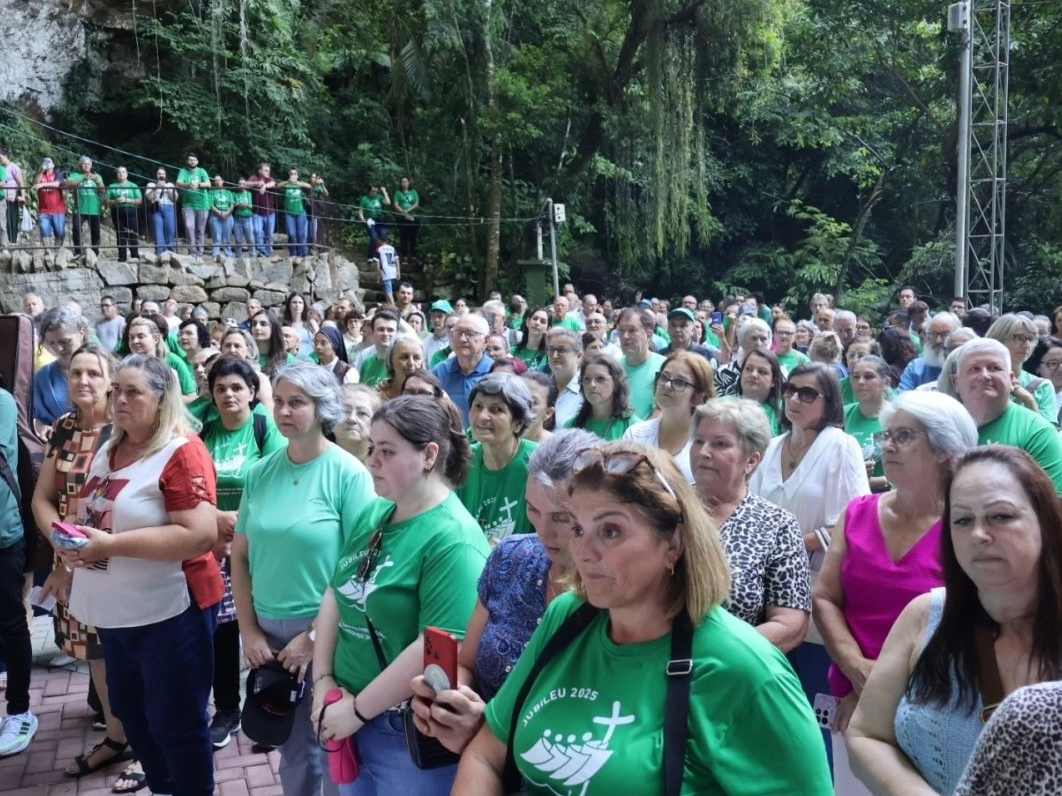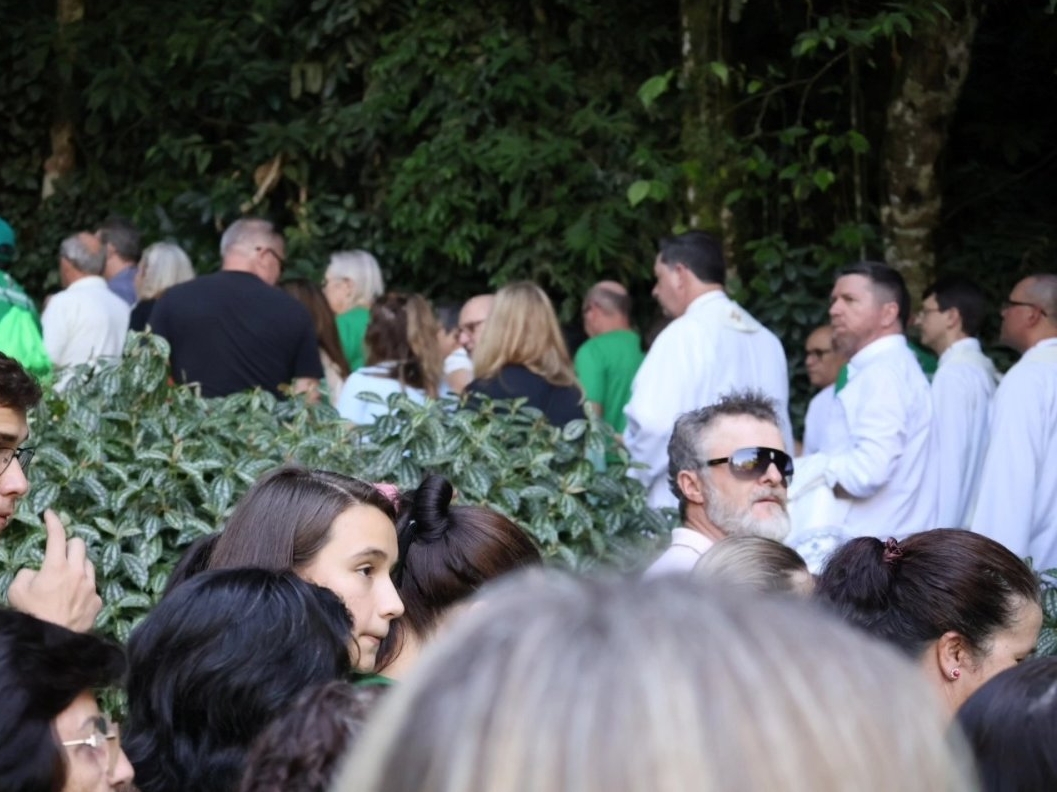 Em seguida, subimos até a Gruta, onde a Diocese de Rio do Sul foi solenemente consagrada à Nossa Senhora de Lourdes. Entregamos nossa caminhada, nossos padres, religiosas e religiosos, missionários e leigos sob o manto da Mãe.