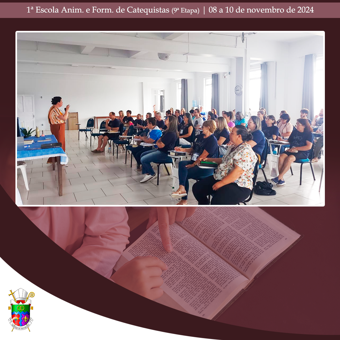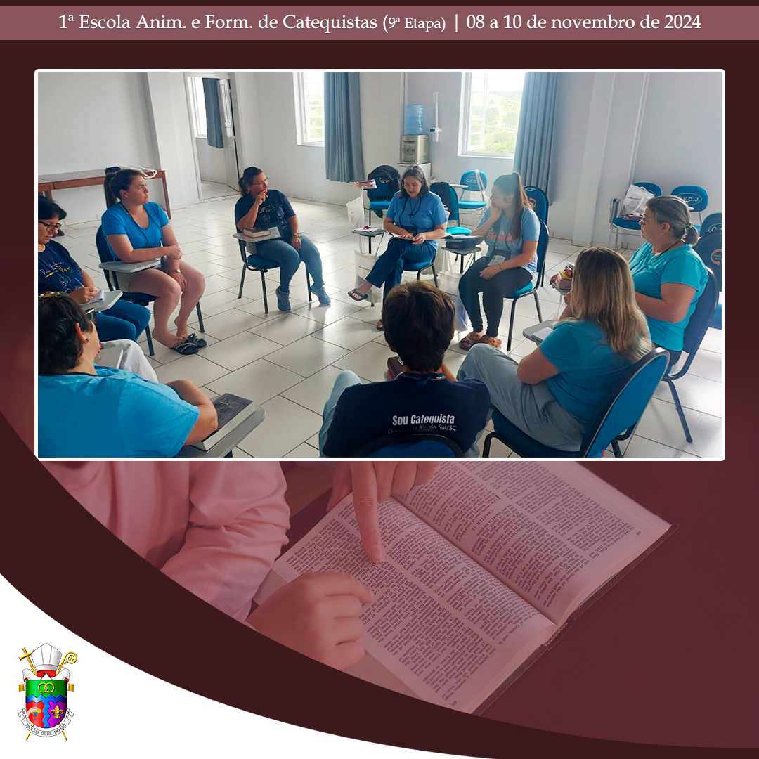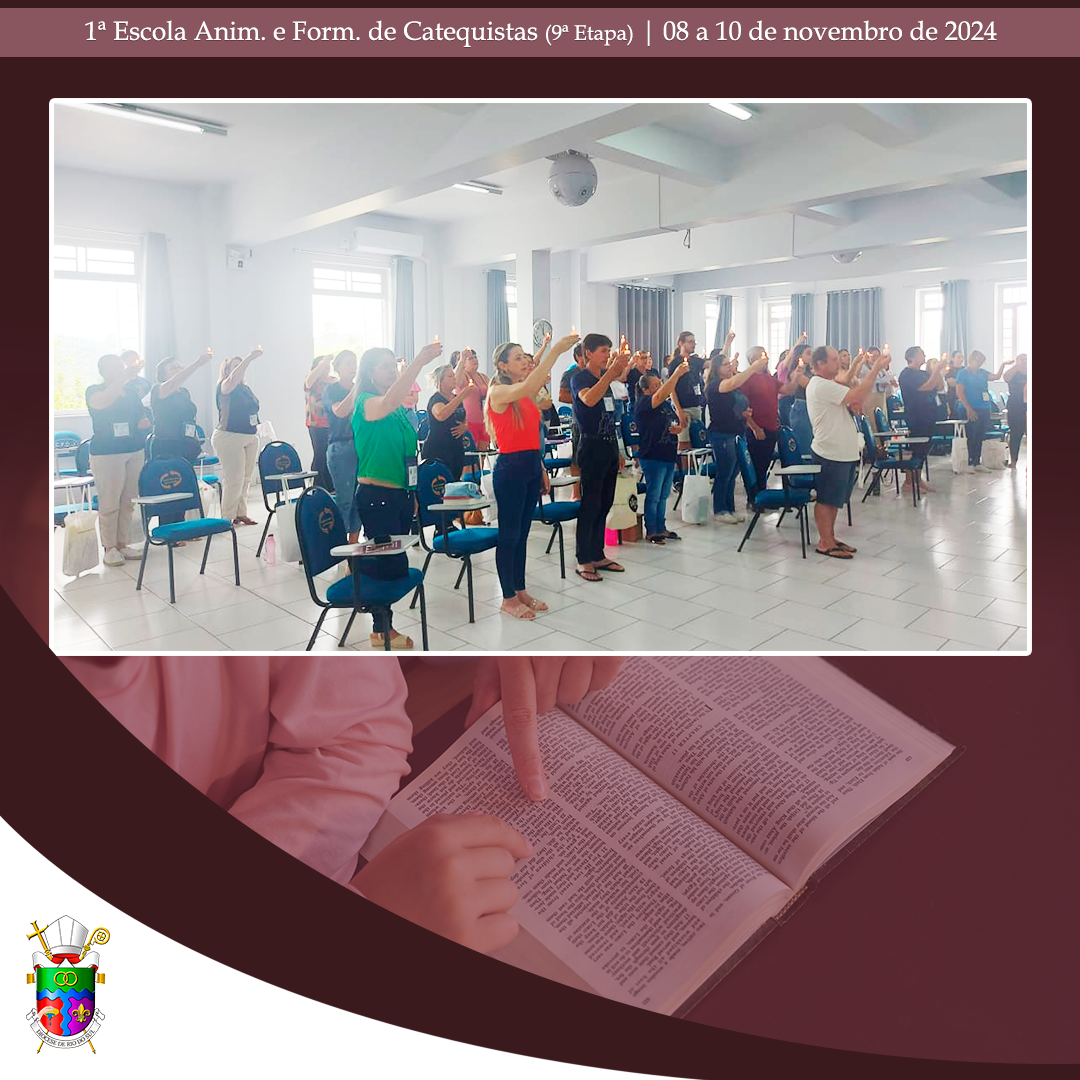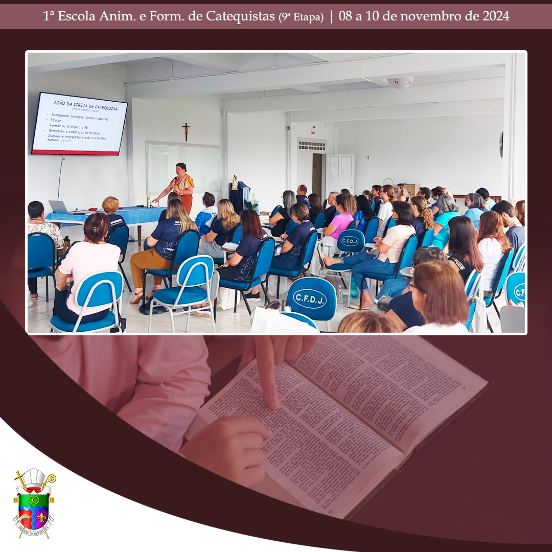 No último final de semana, de 08 a 10 de novembro de 2024, aconteceu, no Centro Diocesano de Formação, em Rio do Oeste, a 9ª etapa da 1ª Escola Diocesana de Animação e Formação de Catequistas. Com momentos de oração e formação, a assessora Débora Puppo, leiga, Doutora em Teologia e Coordenadora Regional da Animação Bíblico-Catequética do Regional Sul 2, da CNBB, trabalhou assuntos pertinentes para catequistas já atuantes, candidatos ao Ministério de Catequista. Nesta etapa, os alunos puderam aprofundar o conhecimento sobre “O catequista como mestre e mistagogo: A catequese de inspiração catecumenal e o papel do catequista nessa perspectiva; prática e partilha de uma atividade evangélico-transformadora (cuidado da Casa Comum, caridade, prática sociotransformadora)”.