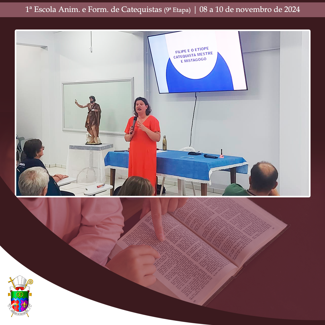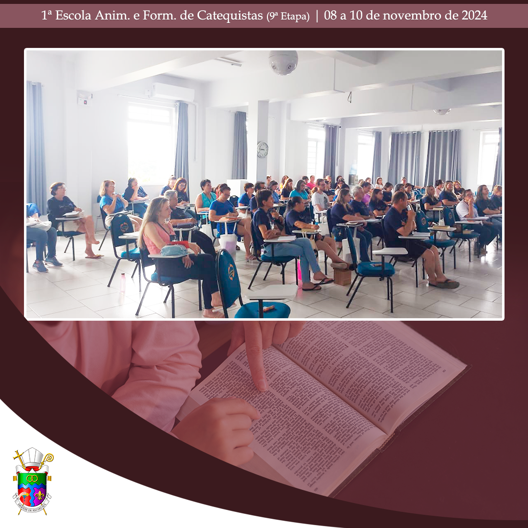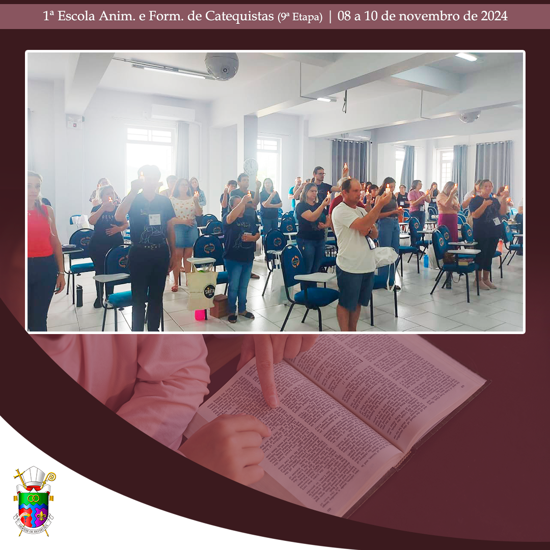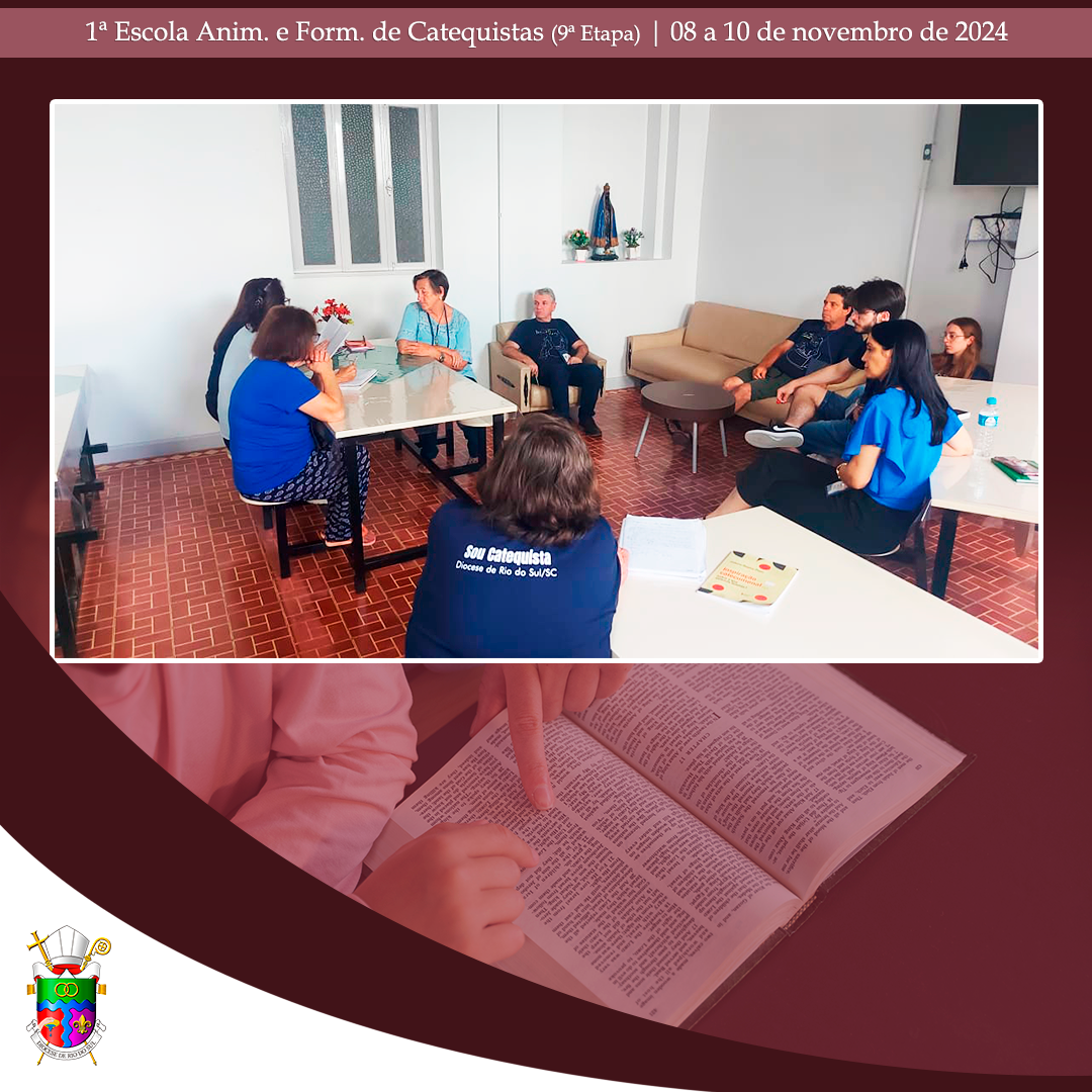 No último final de semana, de 08 a 10 de novembro de 2024, aconteceu, no Centro Diocesano de Formação, em Rio do Oeste, a 9ª etapa da 1ª Escola Diocesana de Animação e Formação de Catequistas. Com momentos de oração e formação, a assessora Débora Puppo, leiga, Doutora em Teologia e Coordenadora Regional da Animação Bíblico-Catequética do Regional Sul 2, da CNBB, trabalhou assuntos pertinentes para catequistas já atuantes, candidatos ao Ministério de Catequista. Nesta etapa, os alunos puderam aprofundar o conhecimento sobre “O catequista como mestre e mistagogo: A catequese de inspiração catecumenal e o papel do catequista nessa perspectiva; prática e partilha de uma atividade evangélico-transformadora (cuidado da Casa Comum, caridade, prática sociotransformadora)”.
