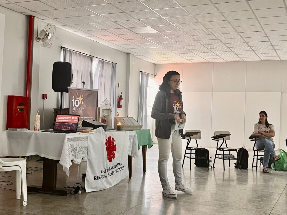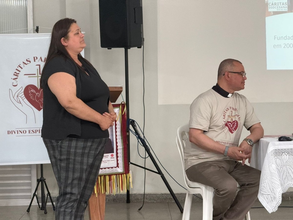 Nele, assessorados pela Sra. Aline Oligari, da Cáritas Regional Santa Catarina, Fabiana Gonçalves, presidente interina da Cáritas Diocesana e Pe. Rinaldo César, Administrador Paroquial da Paróquia Divino Espírito Santo, foram discutidas as premissas da Cáritas, da Doutrina Social da Igreja, e também as coordenadas para iniciar um trabalho Cáritas a nível paroquial. No evento, estiveram presentes mais de 30 pessoas, representando as paróquias do Divino e Paróquia Cristo Rei, de Taió, onde está se iniciando a organização das Cáritas Paroquiais.