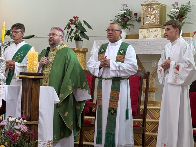 Na manhã do último domingo, 08 de fevereiro, a Paróquia Sagrada Família (Rio do Prata) celebrou um novo capítulo em sua história com a Missa de Posse Canônica de seu novo Administrador Paroquial, Padre Rinaldo César da Silva. A celebração, marcada por ritos de entrega e fidelidade, foi presidida por Dom Adalberto Donadelli Júnior, Bispo da Diocese de Rio do Sul.