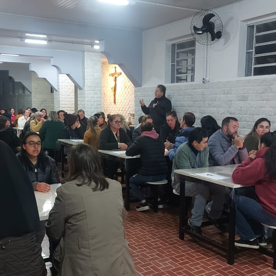 No sábado à noite, os presentes tiveram a oportunidade de aprofundar a espiritualidade da comunhão eucarística, vivenciando intensamente o sentido da partilha, tanto na fração do pão quanto na partilha do vinho. Esse momento especial permitiu que todos sentissem a verdadeira essência da comunhão, fortalecendo os laços de fé e união.