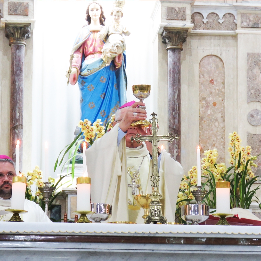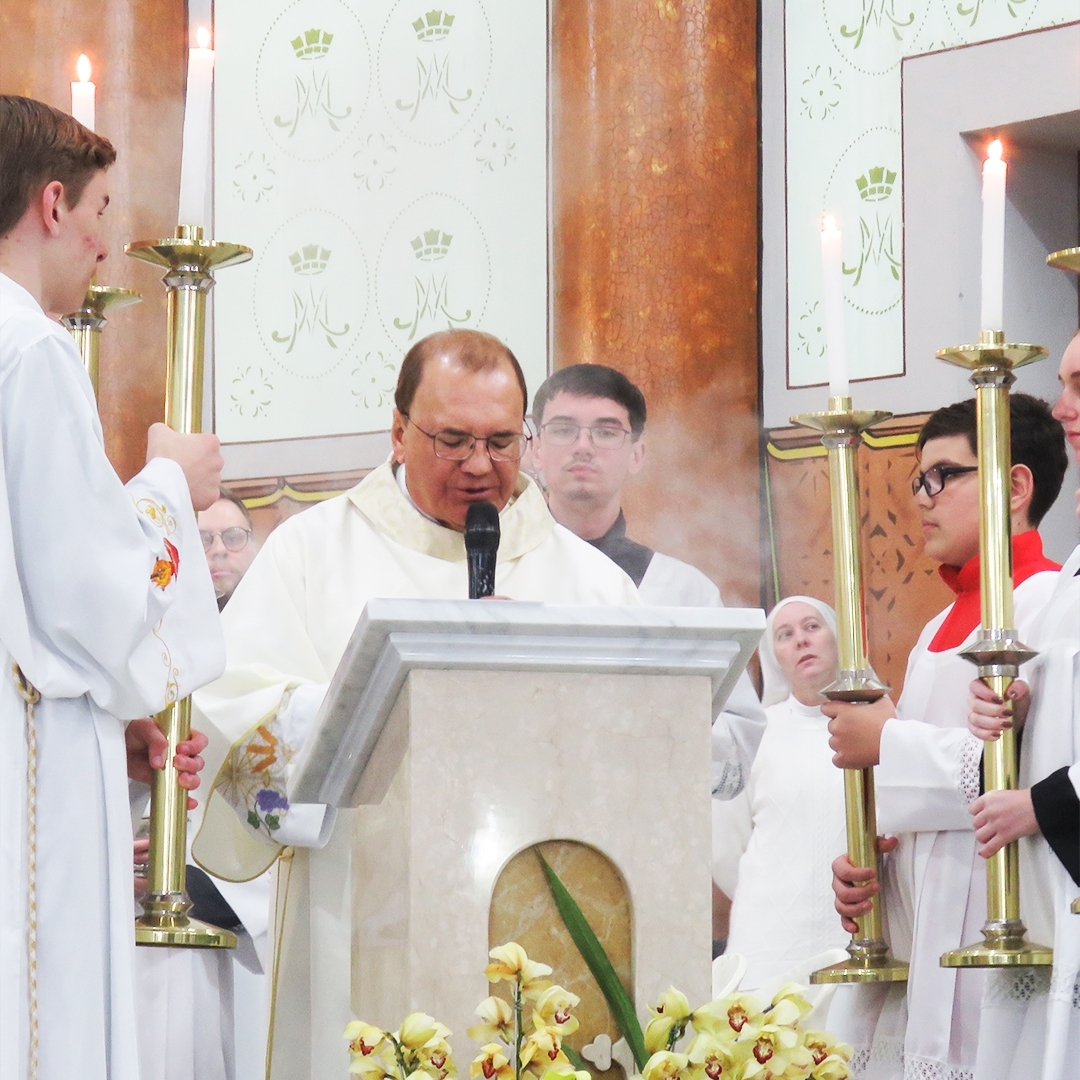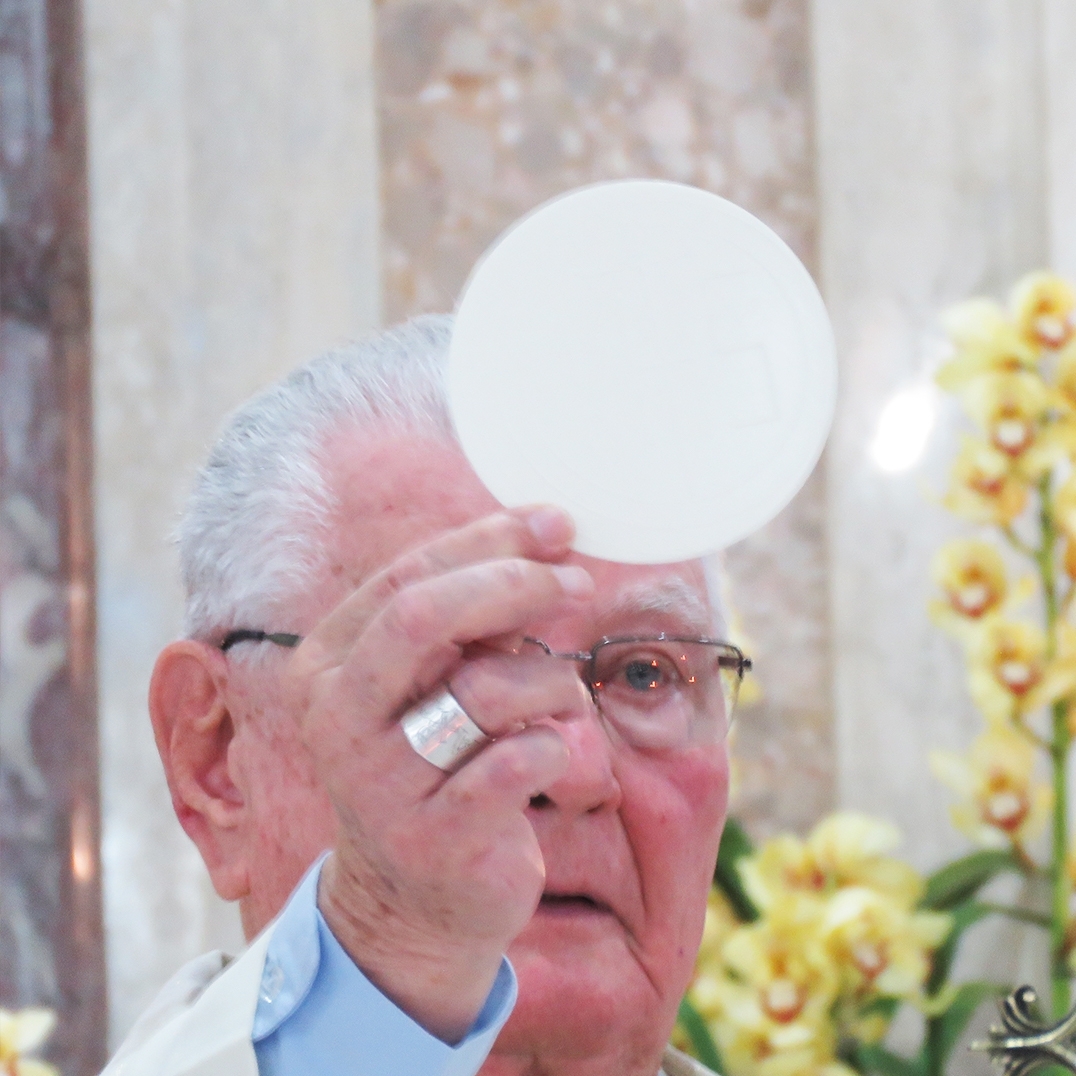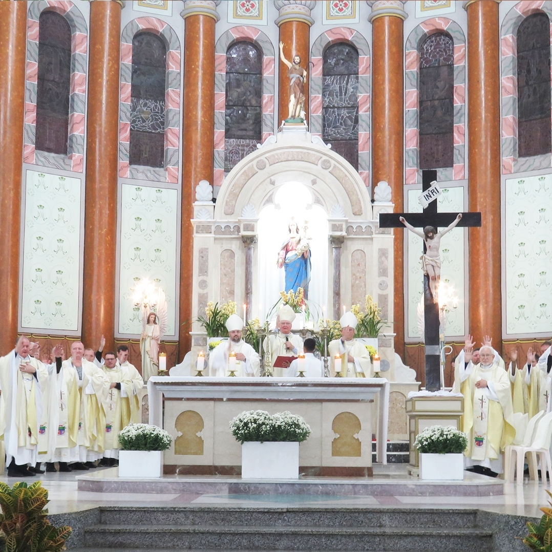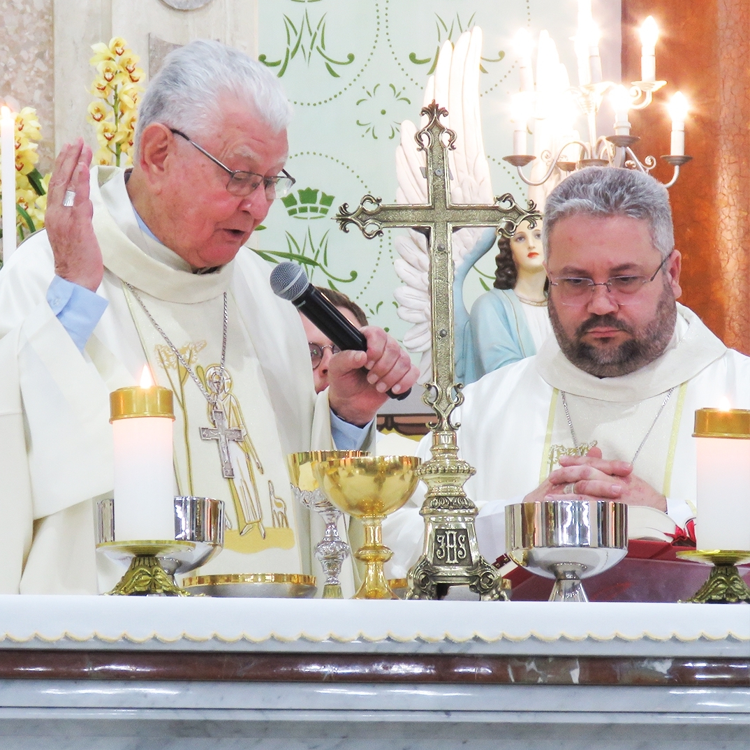 A Santa Missa foi presidida pelo próprio Dom Augustinho, em um momento de profunda gratidão e alegria. Concelebraram a missa Dom Adalberto Donadelli Júnior, Bispo Diocesano de Rio do Sul, Dom Onécimo Alberton, Bispo Auxiliar da Arquidiocese de Florianópolis, e diversos padres da Diocese de Rio do Sul, que se uniram para homenagear o jubilando.