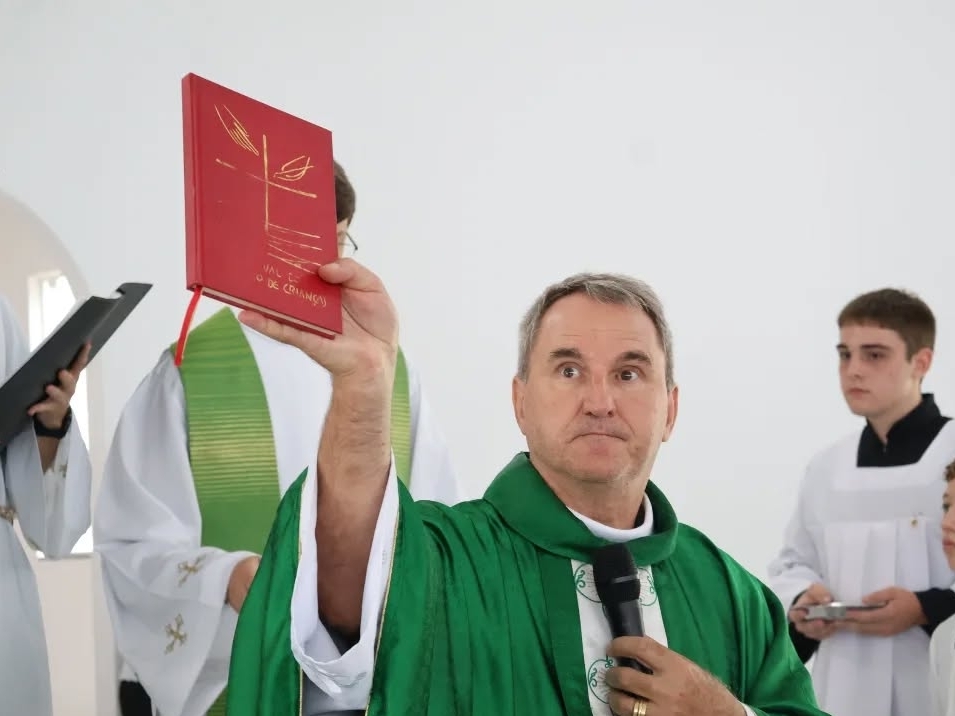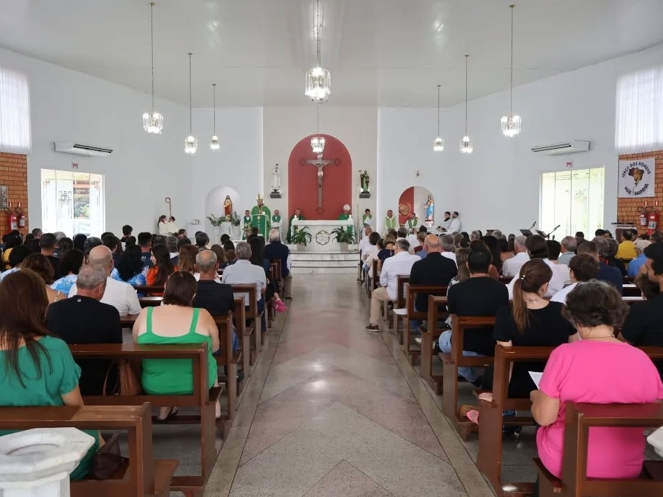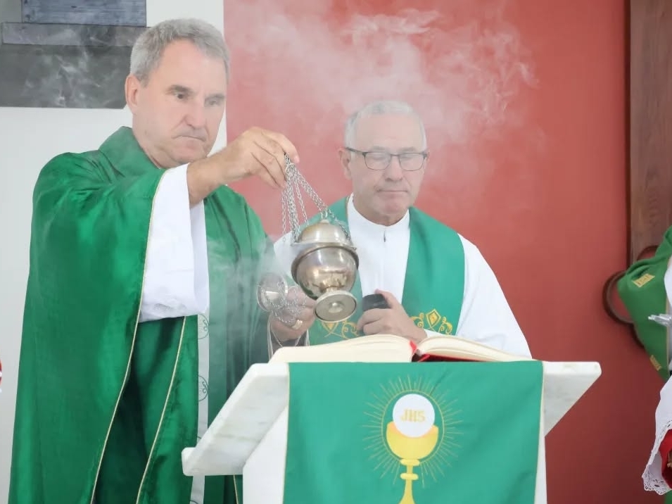 Um dos destaques emocionantes da celebração foi a presença de fiéis vindos da Paróquia São Pedro, de Armazém/SC, que viajaram para prestigiar o Padre Anésio em sua nova missão. Que o Sagrado Coração de Jesus, São Judas Tadeu e Nossa Senhora das Graças ilumine o pastoreio desses novos evangelizadores!