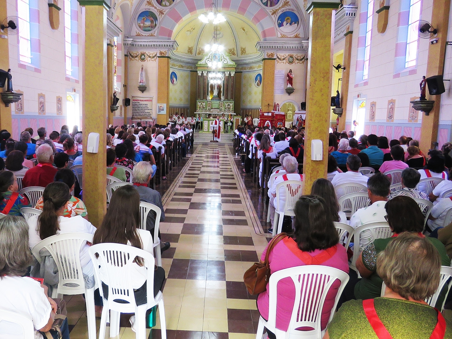 Às 15h teve início a Santa Missa, presidida pelo Bispo Dom Onécimo, concelebrada pelos Padres Arnaldo, Silvino, Éverton e Amarildo. Ainda na Missa, Dom Onécimo explicou o significado da comunidade de Betânia, “comunidade de irmãos”, destacando que os cristãos devem viver como irmãos; relembrou a importância do ouvir e servir, como fizeram Marta e Maria, e que o cristão não deve se fechar em si mesmo, mas que sua vida deve manifestar o poder e a glória de Deus.