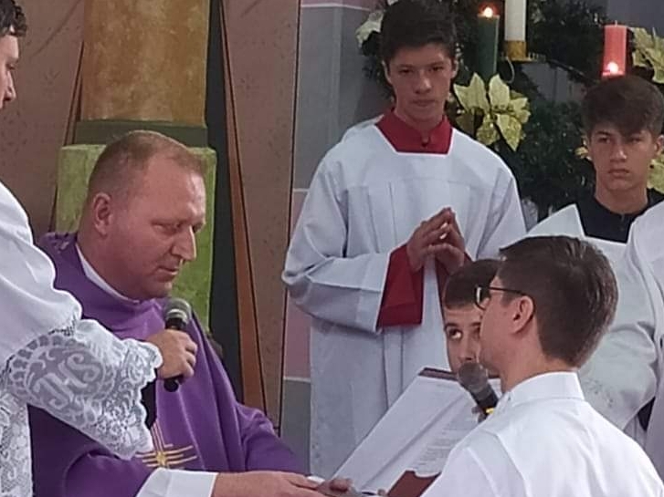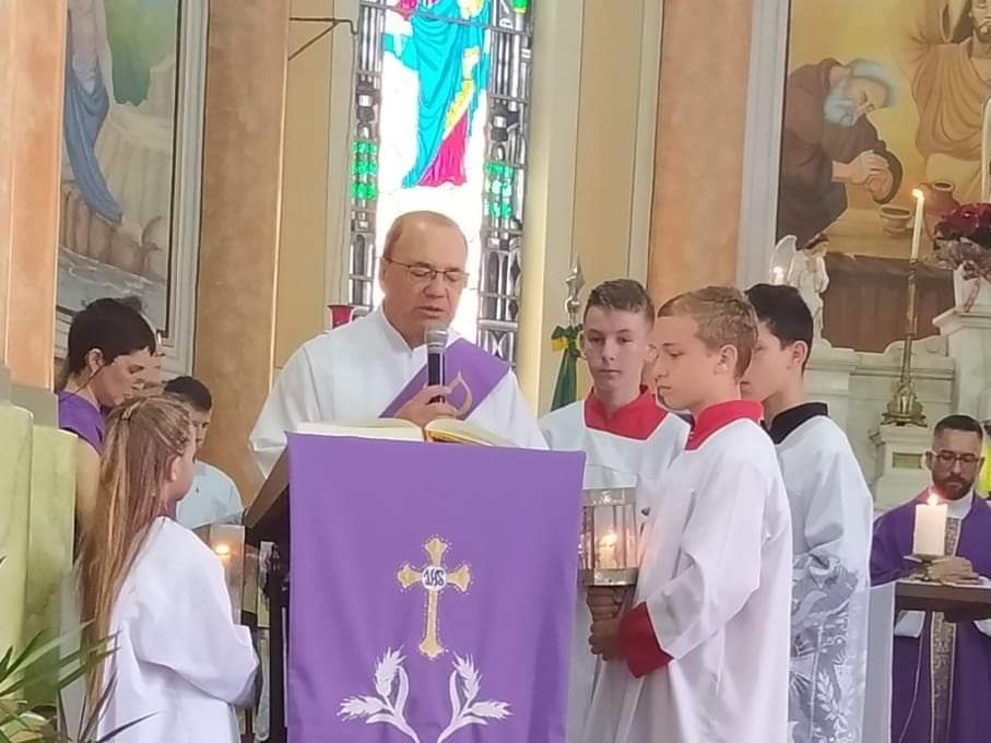 Neste domingo, 04/12/2022, durante a Celebração Eucarística da Festa do padroeiro da Paróquia Santo Ambrósio, em Ascurra, aconteceu o Rito do Leitorado de Giovane Pereira, candidato ao diaconato permanente da Diocese de Rio do Sul.