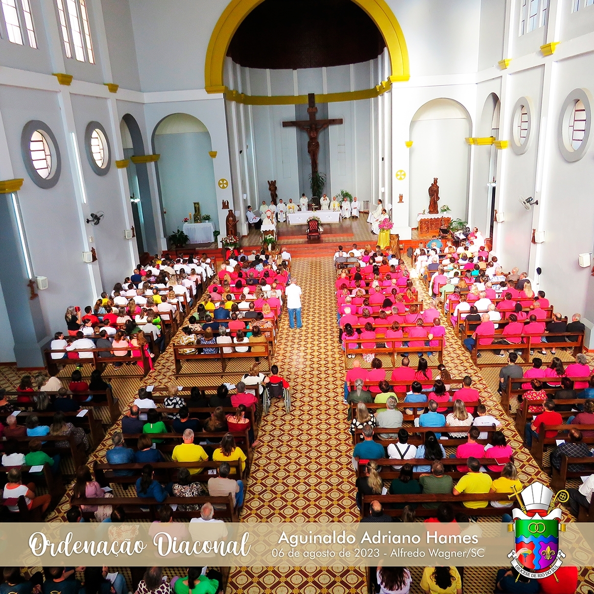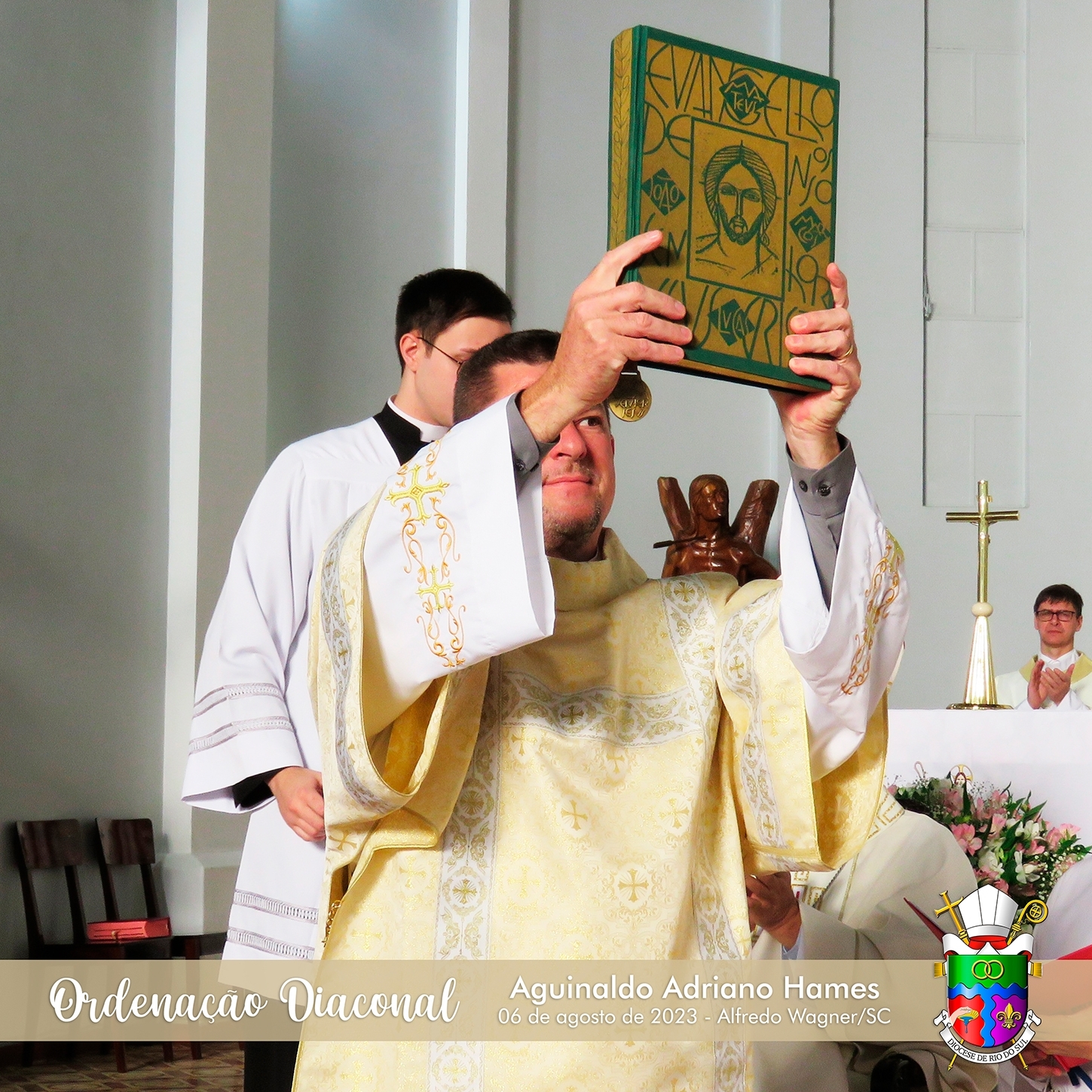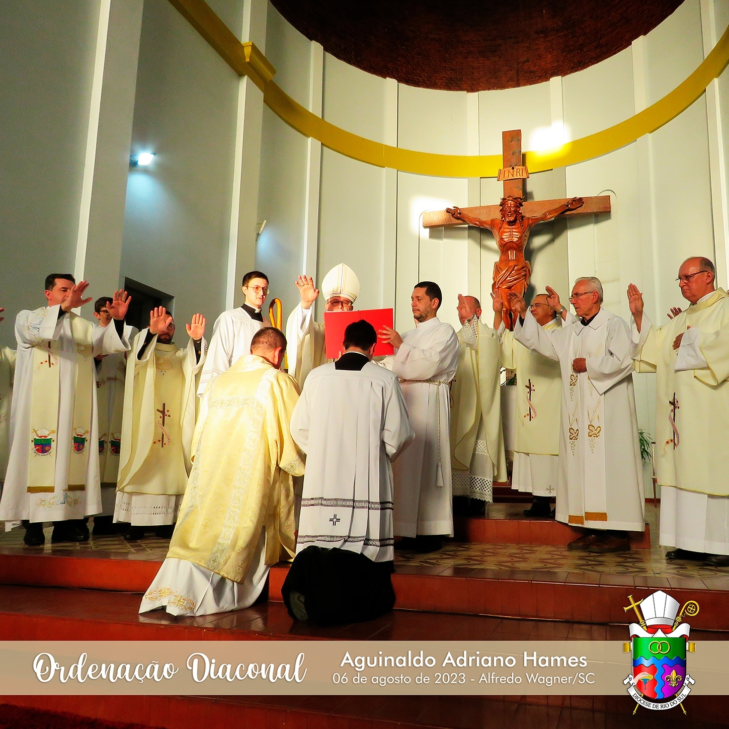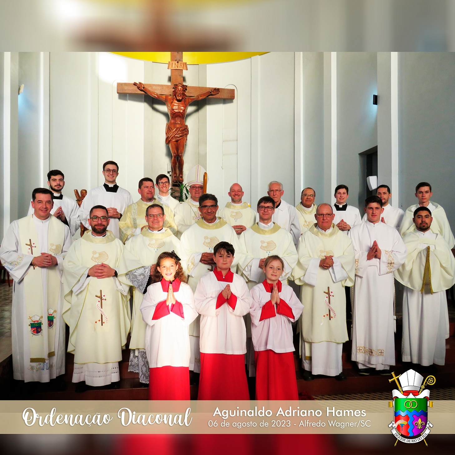 No último domingo, 06 de agosto de 2023, a Paróquia Bom Jesus, de Alfredo Wagner, e toda a Diocese de Rio do Sul esteve em festa, celebrando a Ordenação Diaconal de Aguinaldo Adriano Hames.